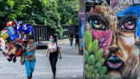 Los caminantes pueden disfrutar del arte urbano plasmado en las pinturas en las columnas del metro. FOTO: Jaime Pérez