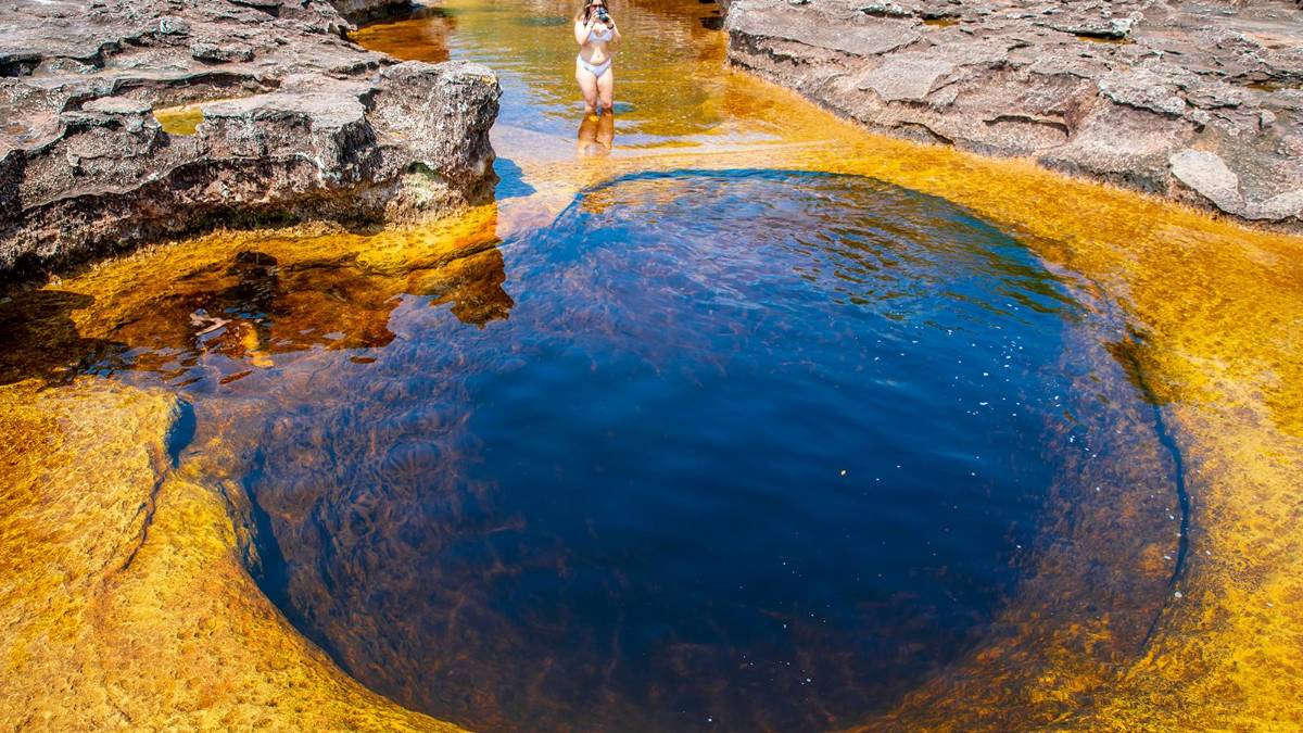 Los Pozos Naturales, también ubicados en San José del Guaviare, presentan una paleta cromática diversa gracias a sus aguas cristalinas y a los minerales que se encuentran en el lecho del río, que reflejan distintas tonalidades bajo la luz del sol. Foto: Juan Antonio Sánchez -