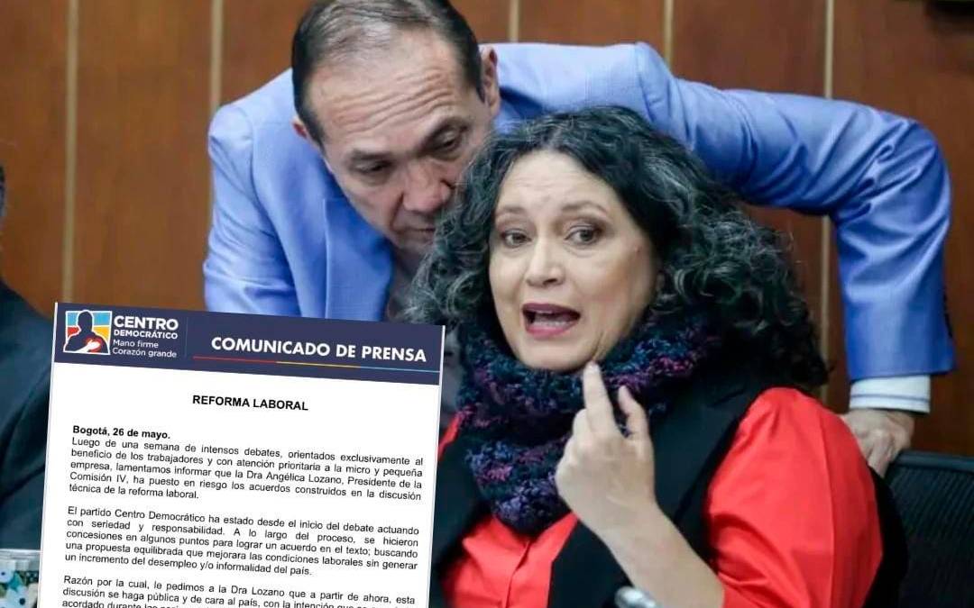 El camino de la reforma laboral consensuada en el Congreso se sigue enredando. El Centro Democrático se quitó del proyecto y responsabilizó directamente a la senadora Angélica Lozano, presidenta de la Comisión Cuarta del Senado, por la ruptura del acuerdo.