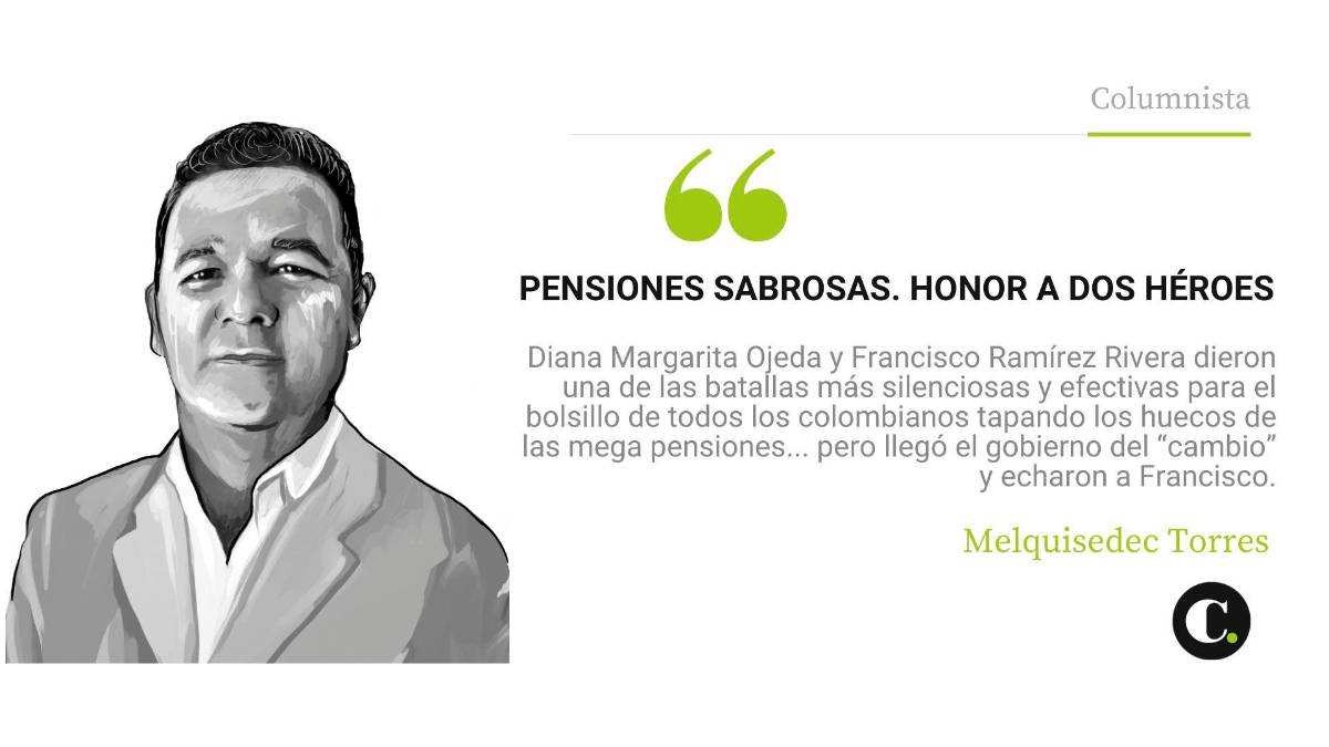 Diana y Francisco fueron respaldados, contra un poderoso tráfico de influencias, por Uribe, Santos y Duque, quienes les dieron toda la autonomía para su titánica tarea. Pero llegó el gobierno del “cambio” y decidió que ya era suficiente, que Francisco era un funcionario indeseable para Gustavo Petro y Guillermo Jaramillo, el ministro de Salud, y lo echaron, lo declararon insubsistente sin ninguna razón oficial. La no oficial es que a este gobierno le molesta que sigan acabando esas indecentes mega pensiones, estorba un funcionario que nos ha ahorrado, él con Diana hasta 2008, decenas de billones de pesos eliminando o rebajando pensiones fraudulentas de excongresistas que torcieron el cuello a las leyes para enriquecerse con las pensiones públicas.