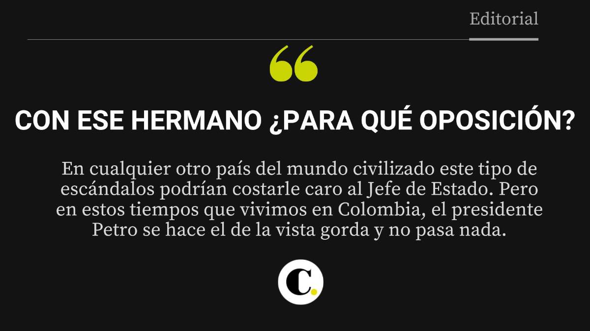 En cualquier otro país del mundo civilizado este tipo de escándalos podrían costarle caro al Jefe de Estado. Pero en estos tiempos que vivimos en Colombia, el presidente Petro se hace el de la vista gorda y no pasa nada. O tal vez sí hizo algo, pidió en marzo de 2023 a la Fiscalía que investigara a su hermano pero han pasado dos años y no se ha sabido nada. Estamos en mora de conocer una explicación del presidente Petro sobre las actuaciones de su hermano.