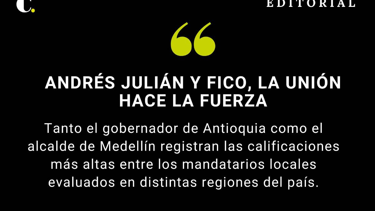 En todo caso, quizá lo más destacable en esta mitad del mandato ha sido el trabajo en equipo. En asuntos como la búsqueda de financiación para el Túnel del Toyo lo mismo que de una salida para conciliar y cerrar el largo litigio entre EPM y la Sociedad Hidroituango y, sobre todo, la decisión de alzar la voz y actuar como contrapeso frente a un Gobierno Nacional que ha sido hostil con Antioquia y Medellín, la unidad entre el alcalde y el gobernador ha sido un activo clave para la región. Ojalá esa coordinación no solo se mantenga, sino que se fortalezca de aquí al final de sus mandatos. .