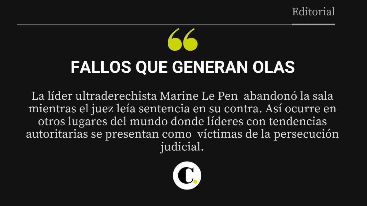 Los cimientos del Estado de derecho son manoseados por altos cargos políticos que cada vez que tienen oportunidad muestran su desdén por los tribunales. Precisamente Marine Le Pen, en un gesto de indudable arrogancia, abandonó la sala mientras el juez leía la sentencia, y se limitó a decir “increíble”. Nada distinto a lo que ocurre en muchos otros lugares del mundo donde líderes con tendencias autoritarias se presentan como mártires del sistema o víctimas de la persecución judicial.
