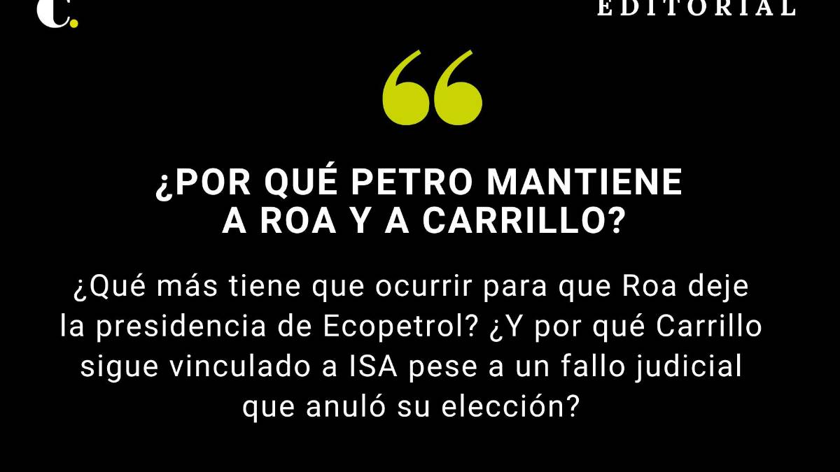 Las dos empresas más poderosas y estratégicas del Estado —Ecopetrol e ISA— han estado durante el gobierno de Gustavo Petro en manos de personas que hoy enfrentan serios cuestionamientos legales. Ricardo Roa, presidente de Ecopetrol, fue imputado ayer por la Fiscalía dentro de una investigación que se suma a otros enredos judiciales. Y Jorge Carrillo, gerente de ISA, recibió una orden del Consejo de Estado para abandonar su cargo, pero desde Ecopetrol —dueña mayoritaria de la empresa de energía— parecen ignorar el cumplimiento pleno del fallo.