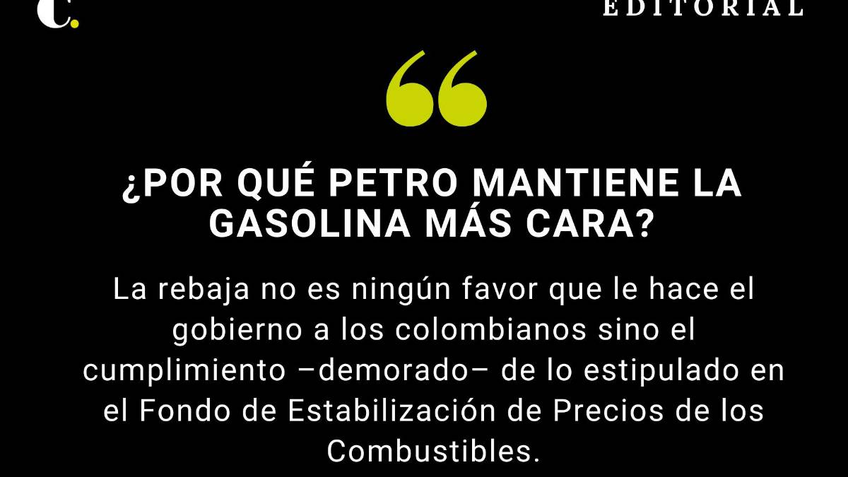 ¿Por qué no lo hizo antes si con el desplome en el precio del petróleo y del dólar, el gobierno estaba en mora de disminuir el valor? Petro estaba dejando pasar el tiempo, hasta que se vio obligado a hacer este pequeño ajuste, que no tenía ninguna justificación mantenerlo porque ya se cerró el hueco en el Fondo de Estabilización de Precios de los Combustibles (Fepc).
