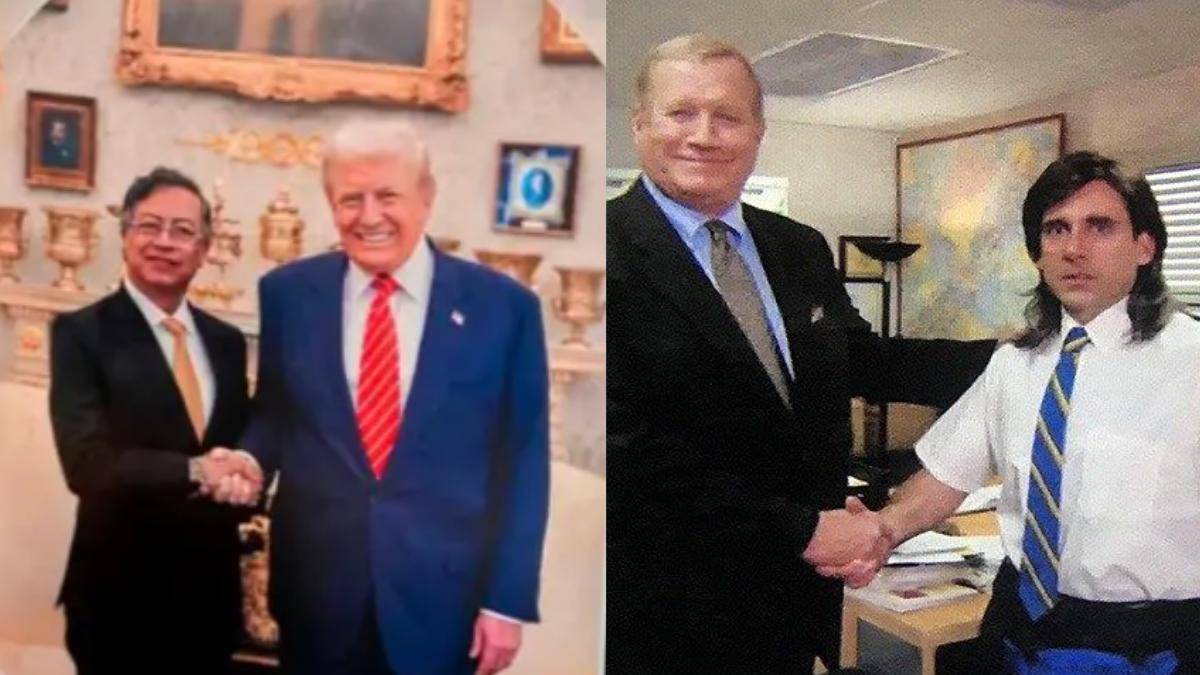 La reunión entre Petro y Trump también desató una ola de memes en redes sociales. FOTO: Presidencia, redes sociales, The Office.