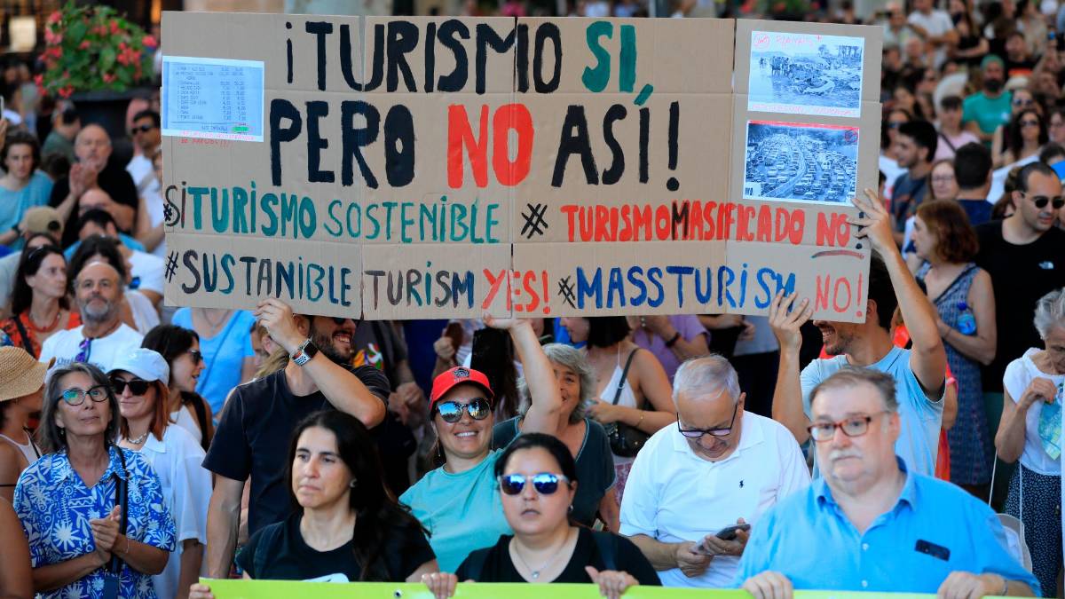 Las protestas fueron convocadas por unas 80 organizaciones y grupos sociales que exigen límites para el turismo excesivo en las Baleares, cuyas principales islas son Mallorca, Menorca e Ibiza.