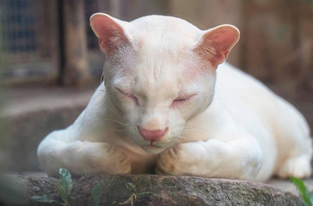 La primera evaluación dio como resultado que el animal era una hembra infantil, de “440 gramos, ojos rojos y pelaje blanco, extremadamente inusual. Se encontraba letárgica y con baja condición corporal”. Es decir, las autoridades llegaron justo a tiempo: de haberse demorado unos cuantos días más el animal habría muerto. Los individuos albinos no suelen pasar de la etapa de la infancia, son muy frágiles, están aquejados por muchas enfermedades, cuenta Jorge Aubad, director del Parque de la Conservación.