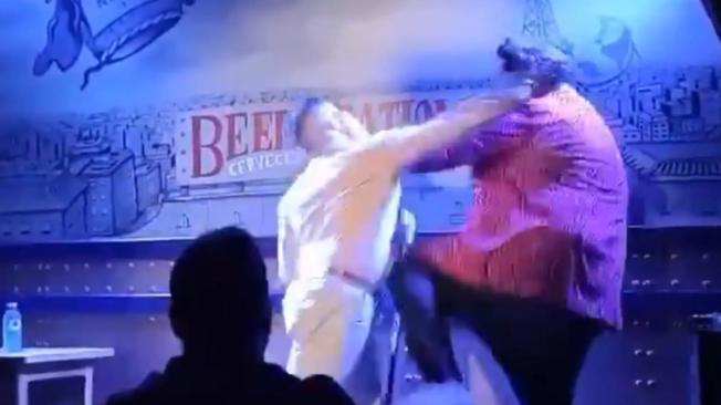 Este fin de semana se hizo viral en redes sociales el video de la agresión a un comediante por parte de un espectador en pleno un show en vivo. Se trata de Jaime Caravaca, quien fue confrontado por Alberto Pugilato, un padre de familia que subió al escenario molesto por unos comentarios que el humorista había hecho sobre su hijo de tres meses.